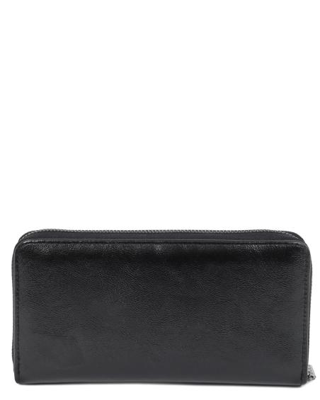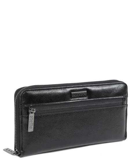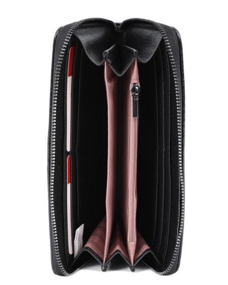 Πορτοφόλι DOCA σε μαύρο χρώμα με ανάγλυφη υφή, μακρόστενο σχήμα και διπλό φερμουάρ. ΤΠΠ469000