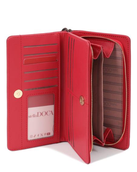 Πορτοφόλι DOCA σε κόκκινο χρώμα με διακοσμητικές λεπτομέρειες, ιδιαίτερη υφή και κλείσιμο με καπάκι. ΤΠΠ517000