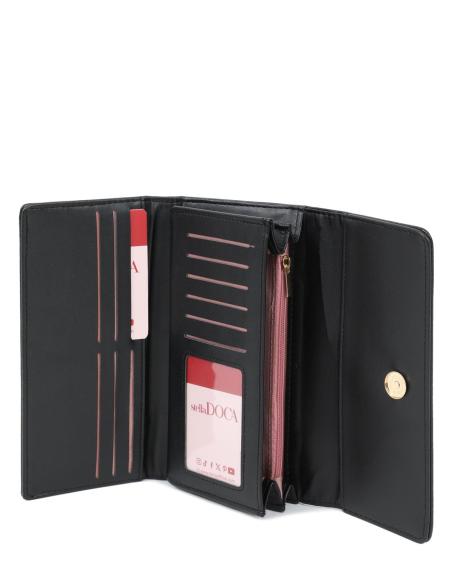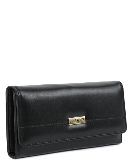 Πορτοφόλι DOCA σε μαύρο χρώμα με μακρόστενο σχήμα, διακοσμητικές λεπτομέρειες και κλείσιμο με καπάκι. ΤΠΠ484000